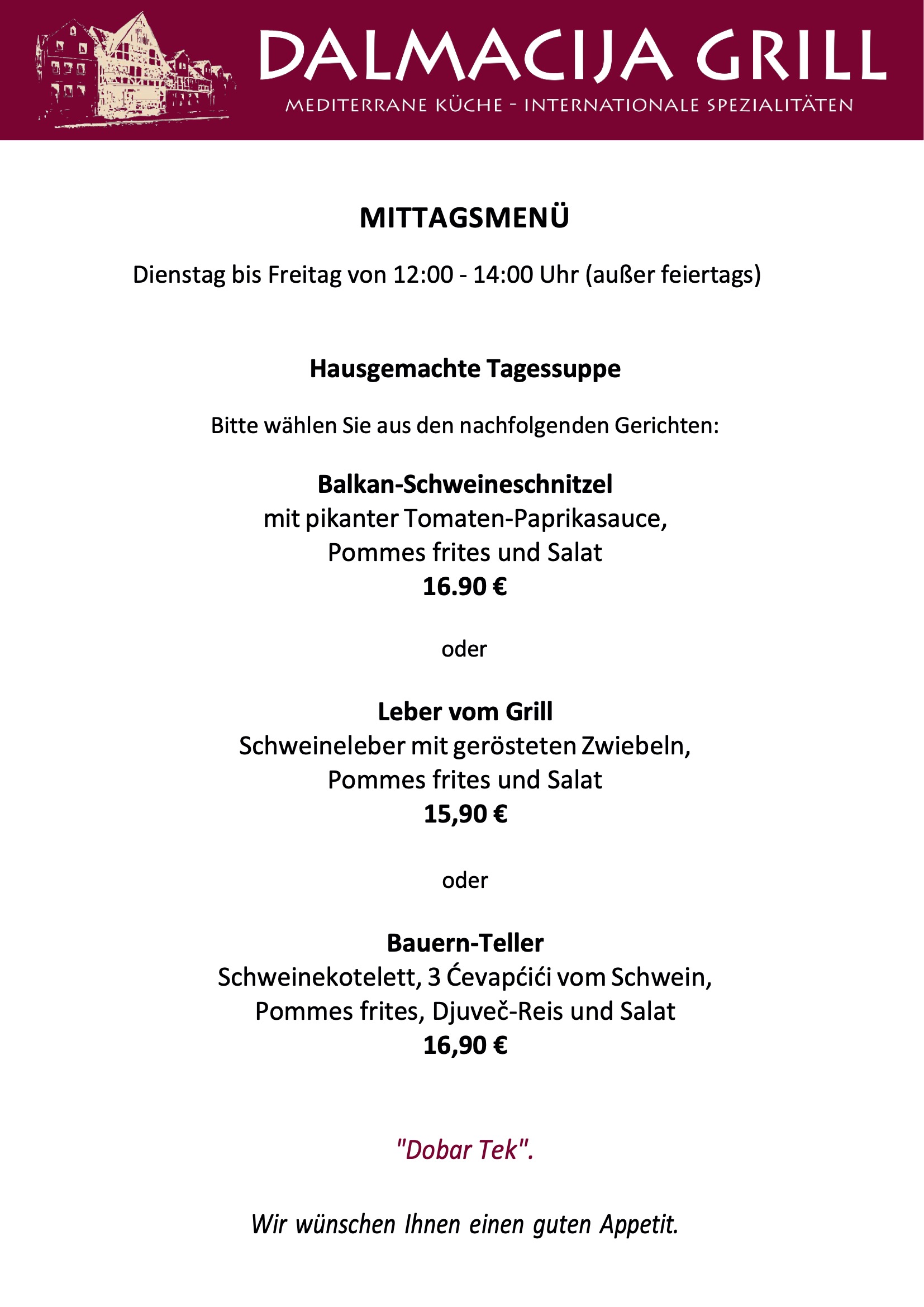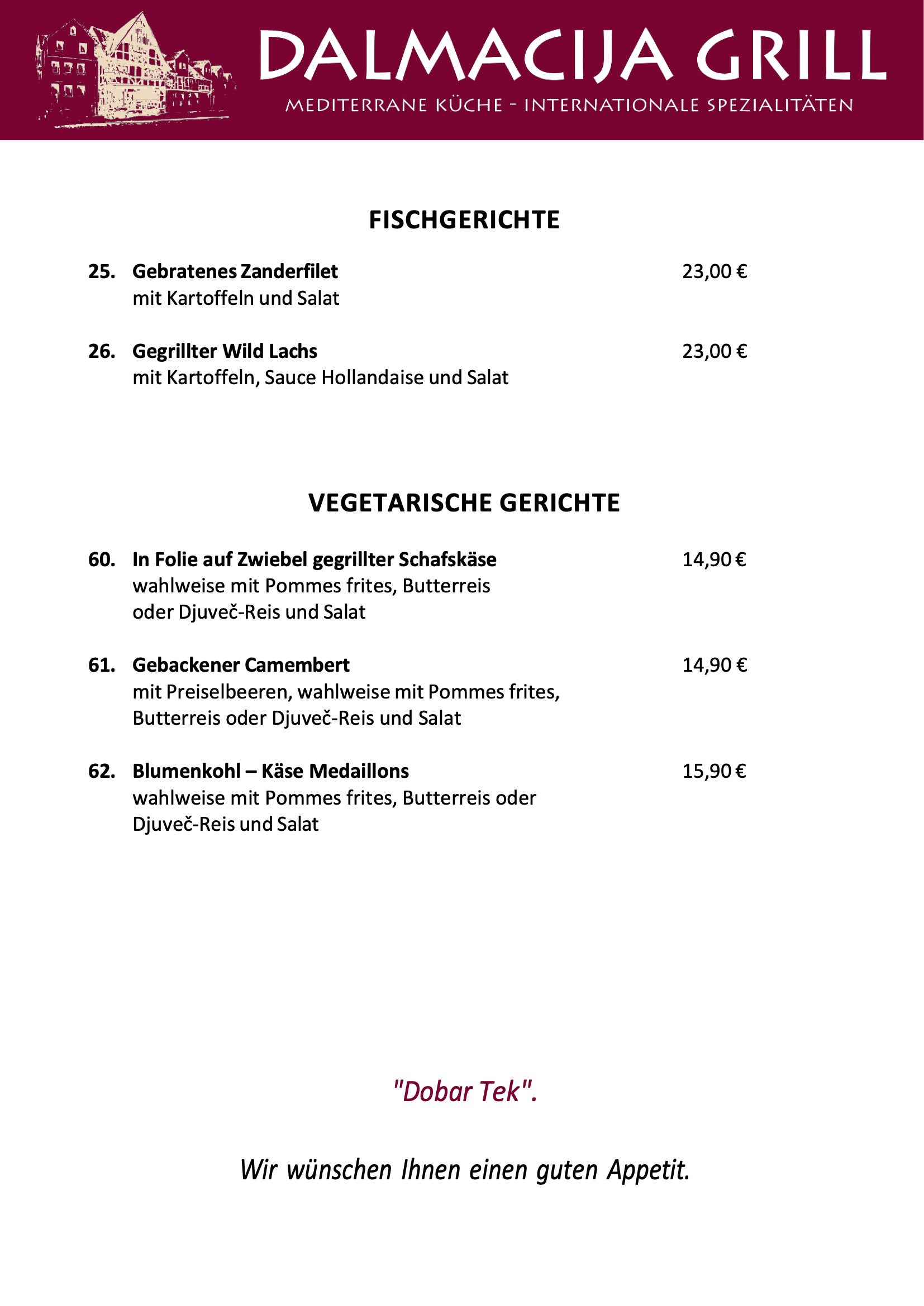 wünschen Edin und das gesamte Dalmacija Grill-Team.