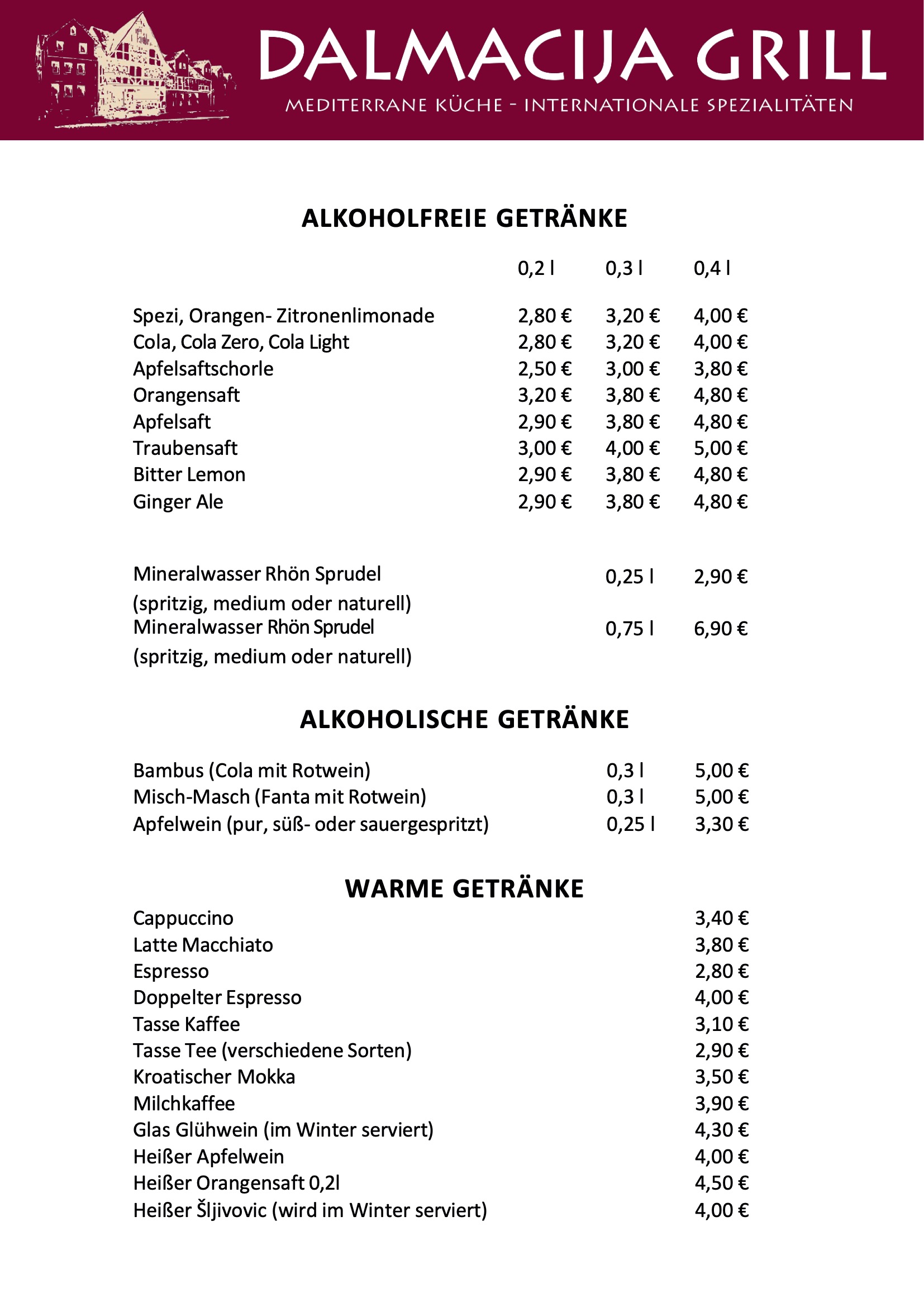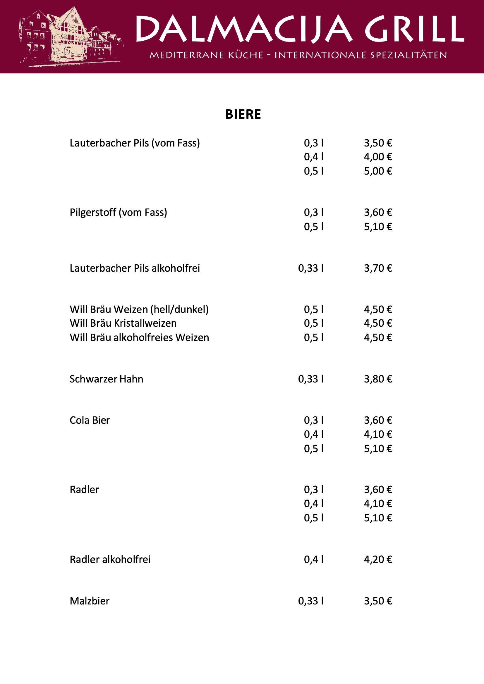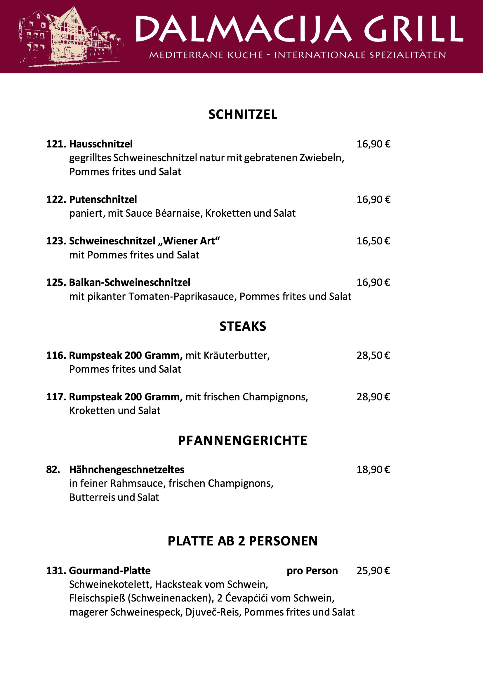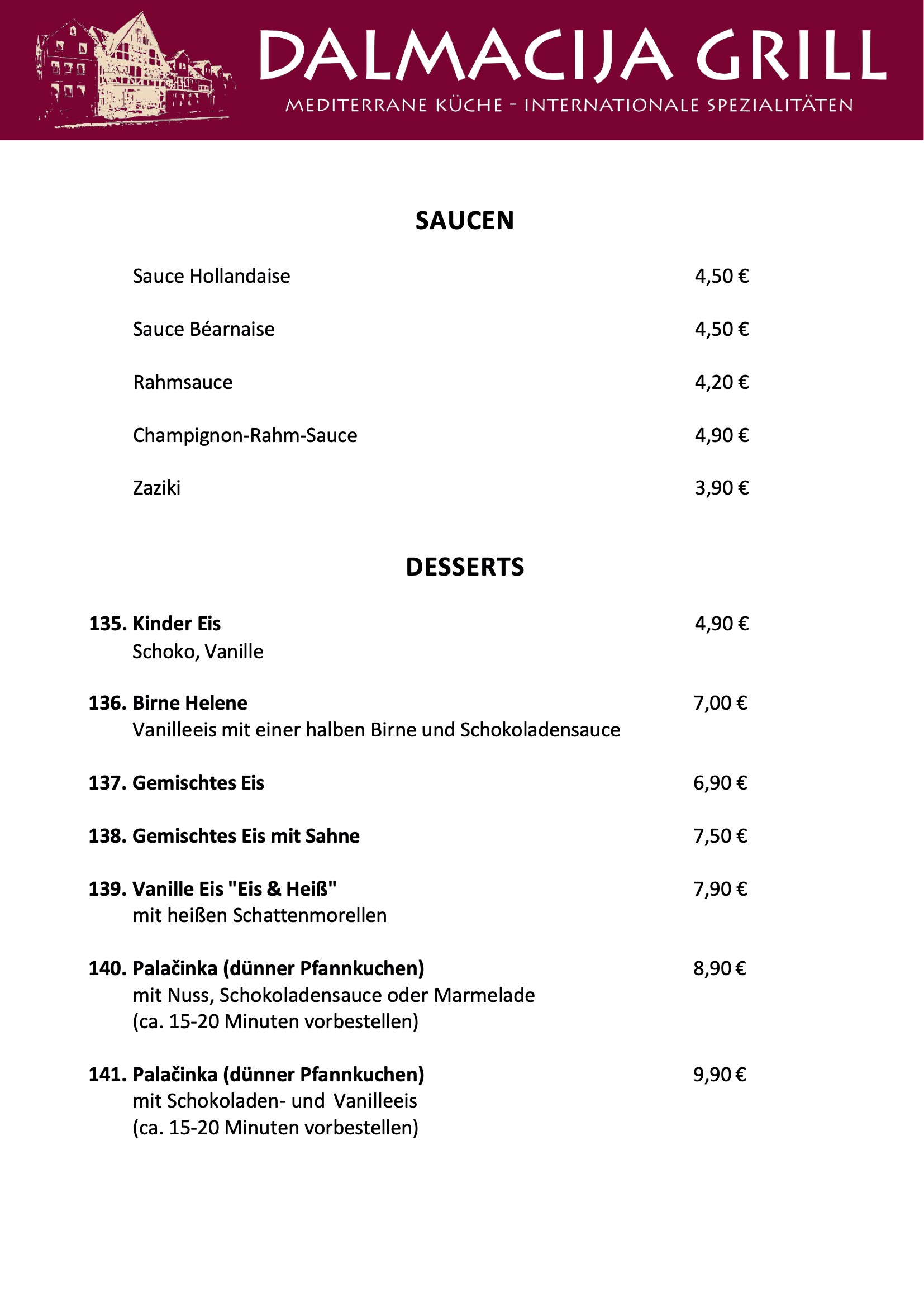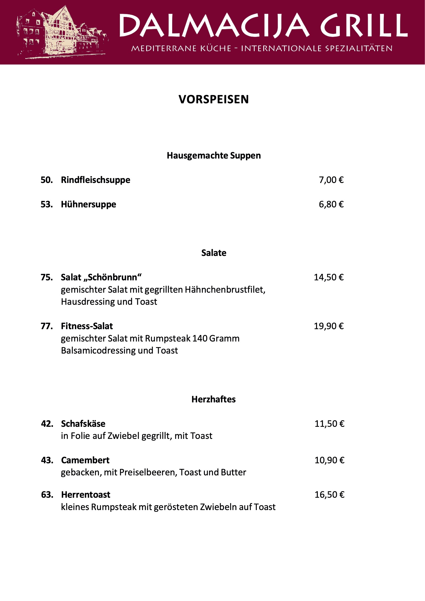 Unsere Speisekarte