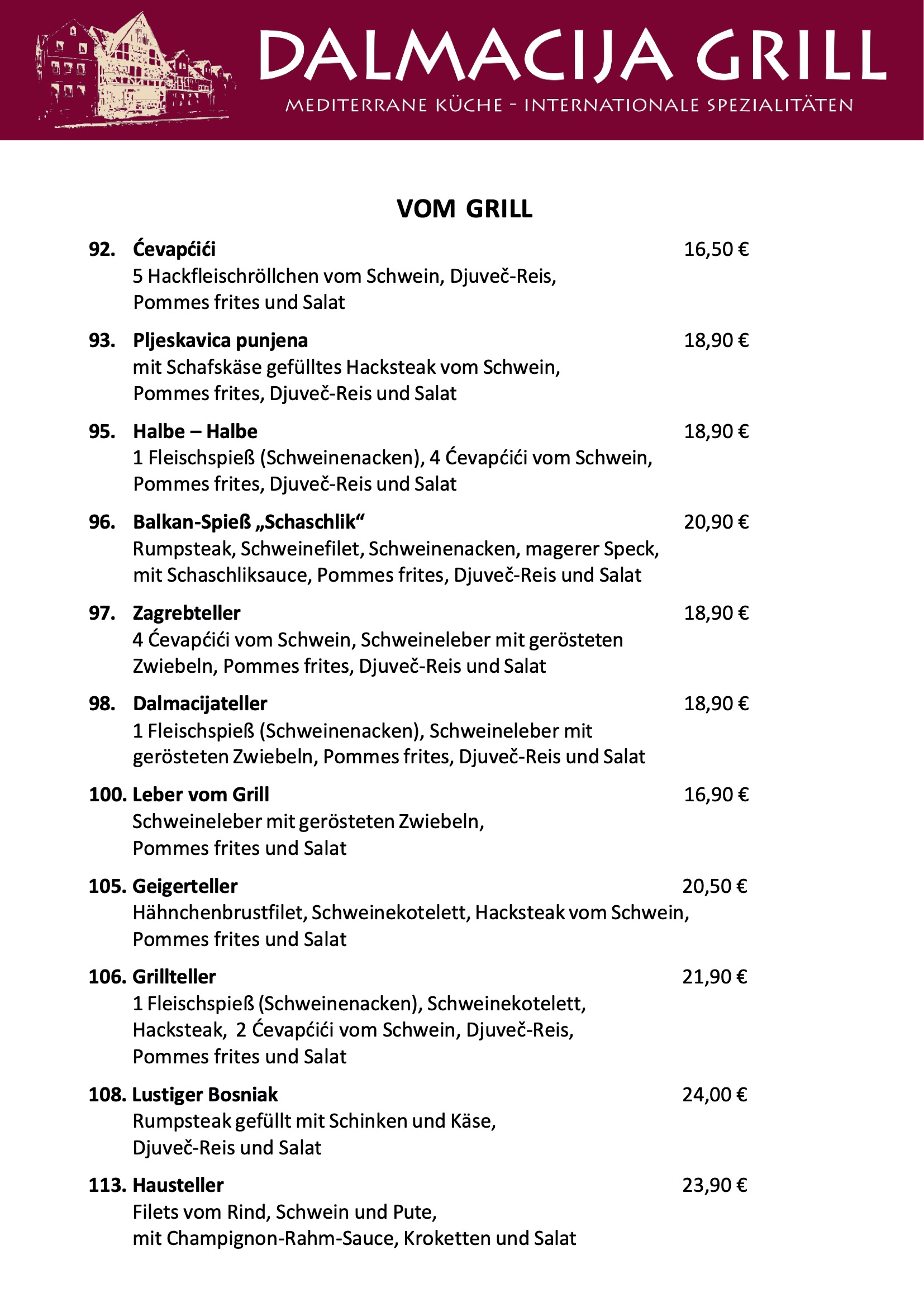 Dem Inhaber Edin Omanovic liegt es sehr am Herzen, die Tradition der Balkanküche zu erhalten und neuzeitliche Einflüsse zu integrieren. Deswegen sollen Speisen und Getränke in regelmäßigen Abständen wechseln, um Sie, liebe Gäste, lukullisch zu verwöhnen.